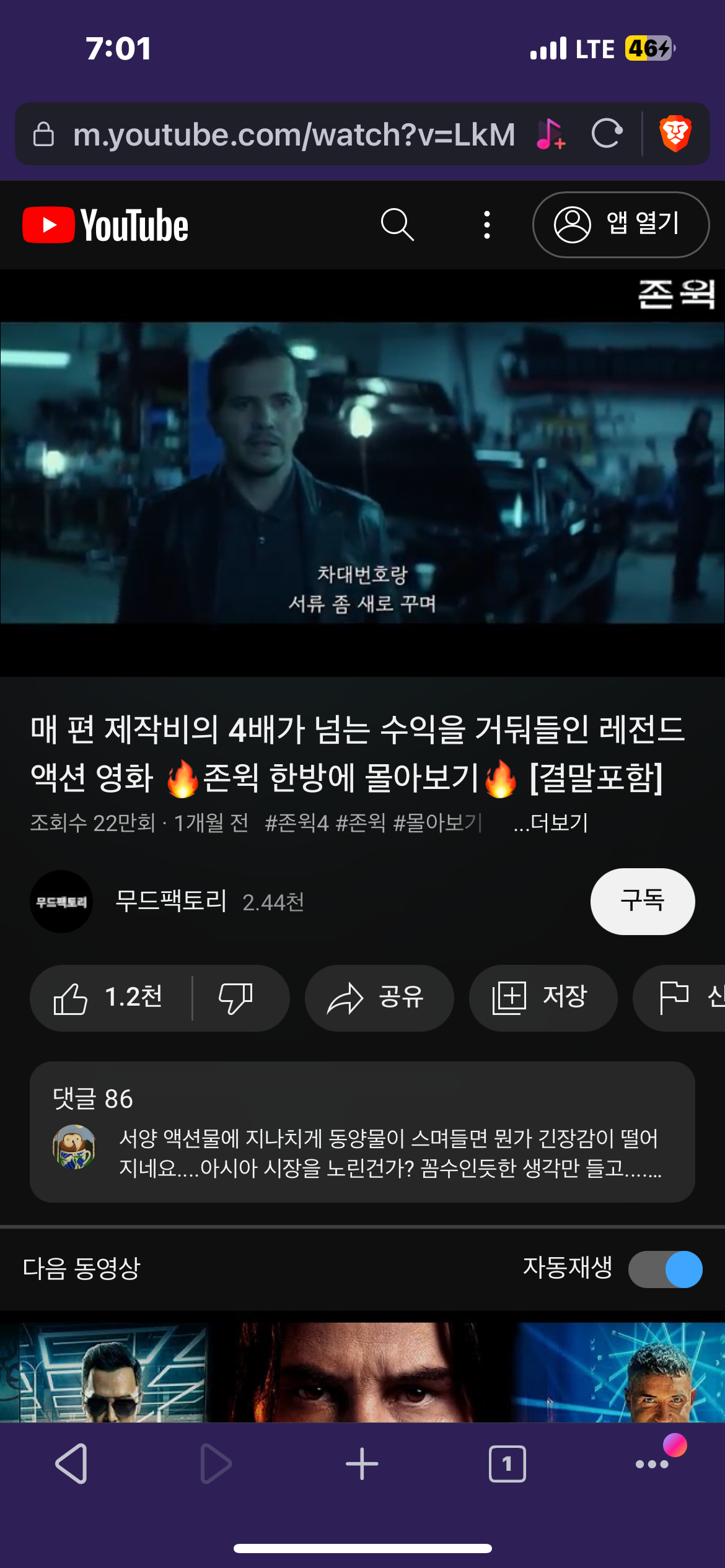 PC에 설치 후 브레이브 브라우저에서 유튜브에 접속해서 바로 영상을 재생해 보시라.