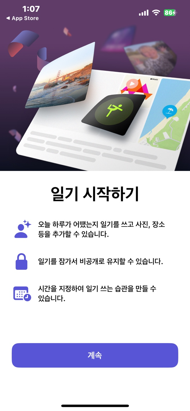 애플 'iOS 17.2' 정식 배포 후 일기(저널) 앱 둘러보기