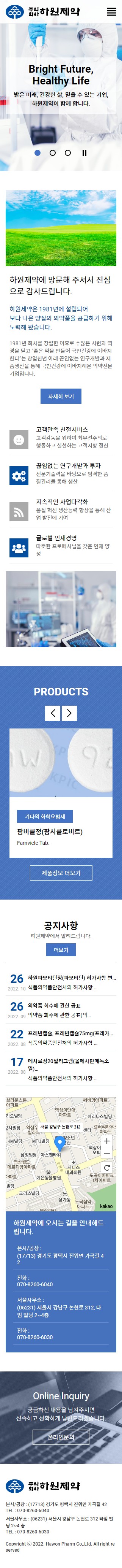 하원제약 홈페이지 리뉴얼 완료